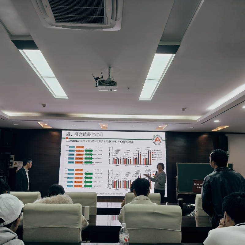 报告中,张慧系统梳理了三维基因组学的研究进展及其在家禽遗传育种领域的创新应用,并聚焦肉鸡腹部脂肪沉积这一产业与科研热点,重点分享了其科研团队如何综合利用三维基因组学及其他多组学技术手段,在揭示腹脂性状形成的分子调控网络方面所取得的一系列重要研究成果。整场报告专业逻辑清晰知识前沿、内容层层递进深入浅出,为在场师生提供了宝贵的学术视角与研究思路。